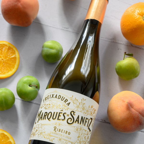 Marqués de Sanfiz es el resultado del perfecto ensamblaje de las tres variedades autóctonas gallegas más importantes, Treixadura, Godello y Albariño, procedentes de viñedos situados en el entorno del embalse de Castrelo de Miño. El clima de transición atlántico-mediterráneo permite la vendimia obteniendo un óptimo estado de maduración, sin perder la acidez y complejidad aromática características.