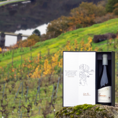 Un Mencía de guarda criado en ánforas de barro durante 9 meses, 31 en depósito y un mínimo de 24 en botella, sin prisas, antes de salir al mercado. Da lugar a un vino cálido, estructurado y muy agradable. Su paso por el ánfora le aporta una apertura aromática, en la cual destaca los aromas a fruta roja madura con ligeros aromas minerales, en boca le confiere un paso sedoso y tremendamente equilibrado.